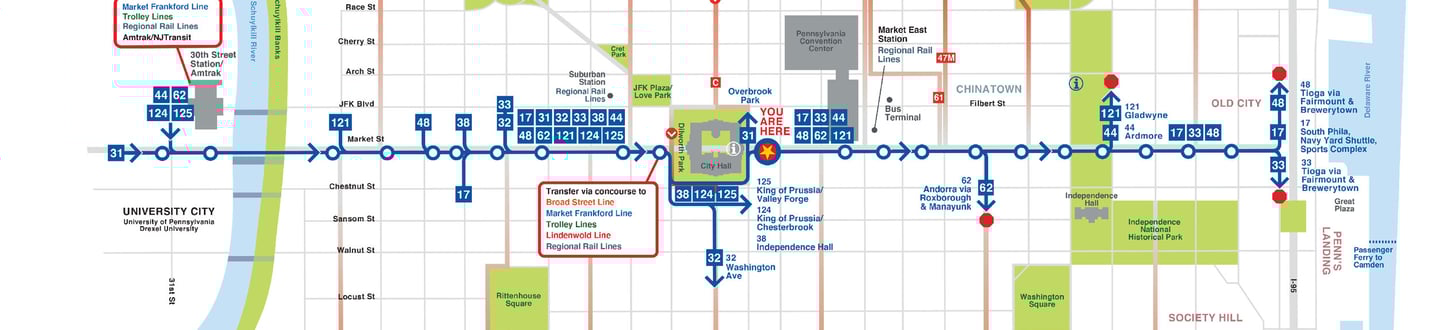 A redesigned map of the Septa Bus routes were also redesigned to be cleaner and more legible but ultimately were not used.